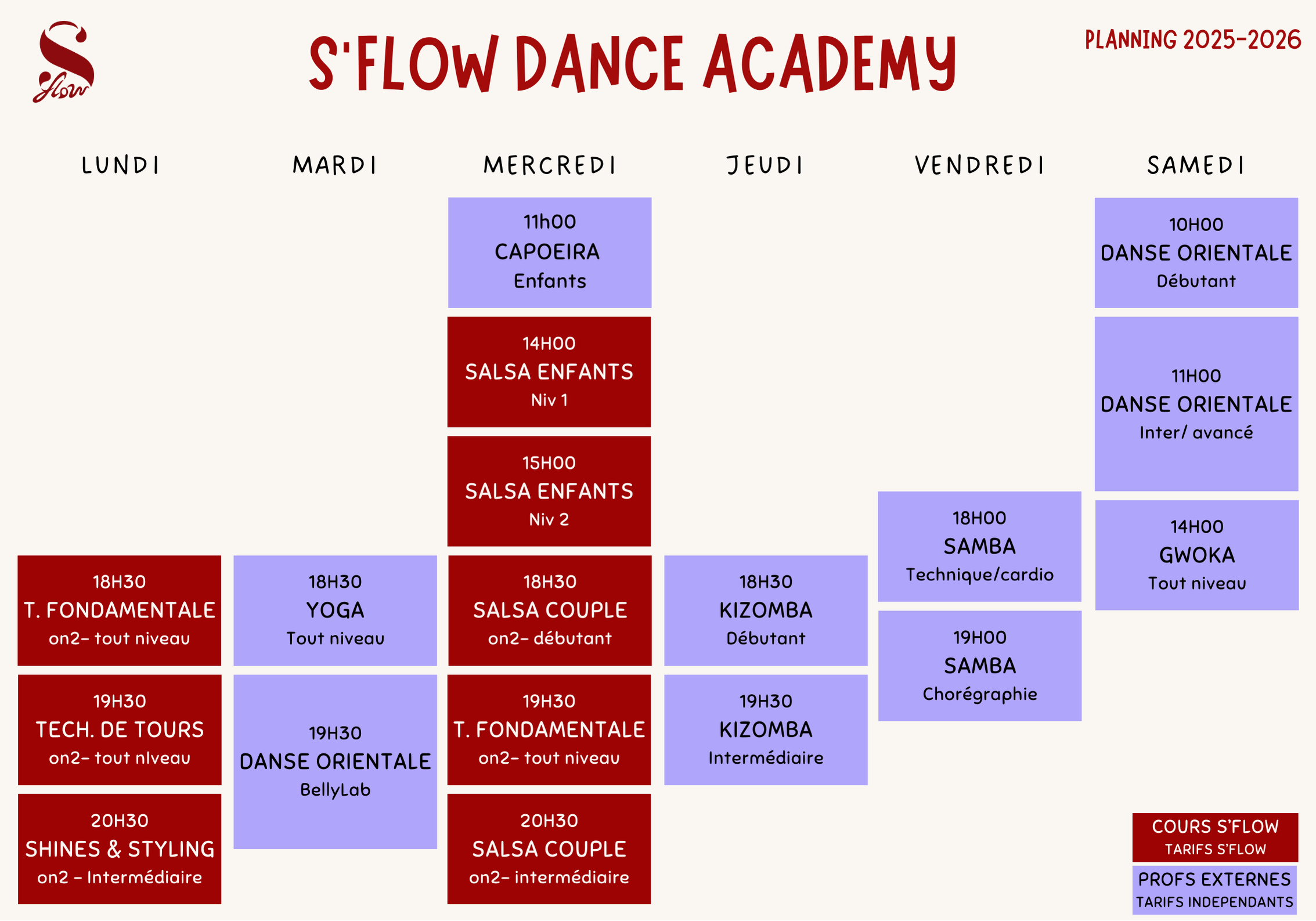 Cette saison nous auront deux niveaux: N1 pour les nouveaux débutants qui découvrent la Salsa et N2 pour ceux ayant déjà au minimum 1 an de pratique à la S'Flow.